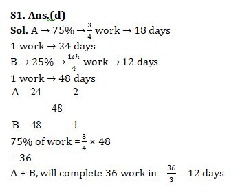 Q1. A can do 75% of a job in 18 days and B can do 25% of the job in 12 days. If they work on it together, in how many days can they do 75% of the job?
