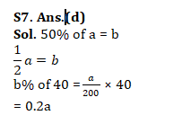 Q7. 50% of a = b, then b% of 40 is the same as _________ of a.