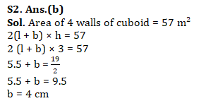 Q2. Area of 4 walls of a cuboid is 57 sq m, if its length is 5.5 m and height is 3 m. What is its breadth (in m)?